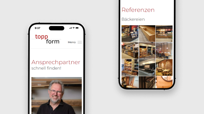 Das Ziel war daher eindeutig: eine klare Website-Architektur, ein moderner Auftritt und eine verbesserte Sichtbarkeit, damit toppform stärker wahrgenommen wird und Neukunden einfacher den Weg in die Zusammenarbeit finden.
